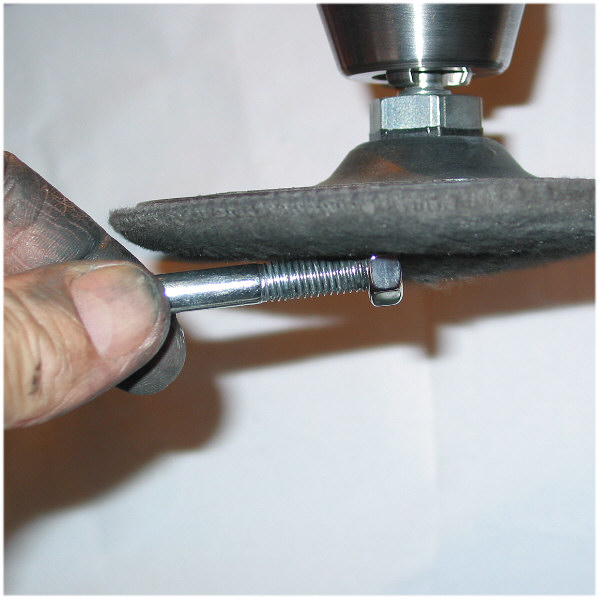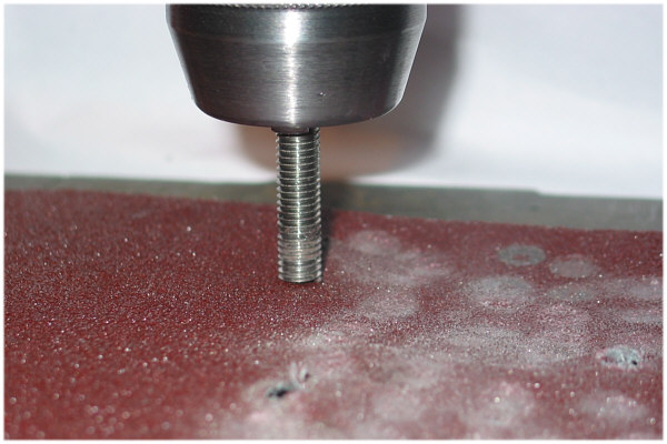 genau unter das Schleifpapier, dadurch entsteht eine schöne Rundung, da das Schleifpapier in dieses Loch gedrückt wird. |